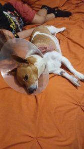 the surgery she needed, and she is home recovering and really doesn’t like the cone. She will get her sutures out next week.