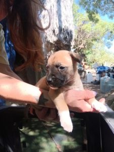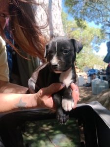 Unfortunately, right before he was approved for housing, Ella went into her first heat and became pregnant. She gave birth to her puppies the same day he signed the lease. Right now, all of the dogs are still living in the river bottom, and he is trying desperately to do the right thing for them.